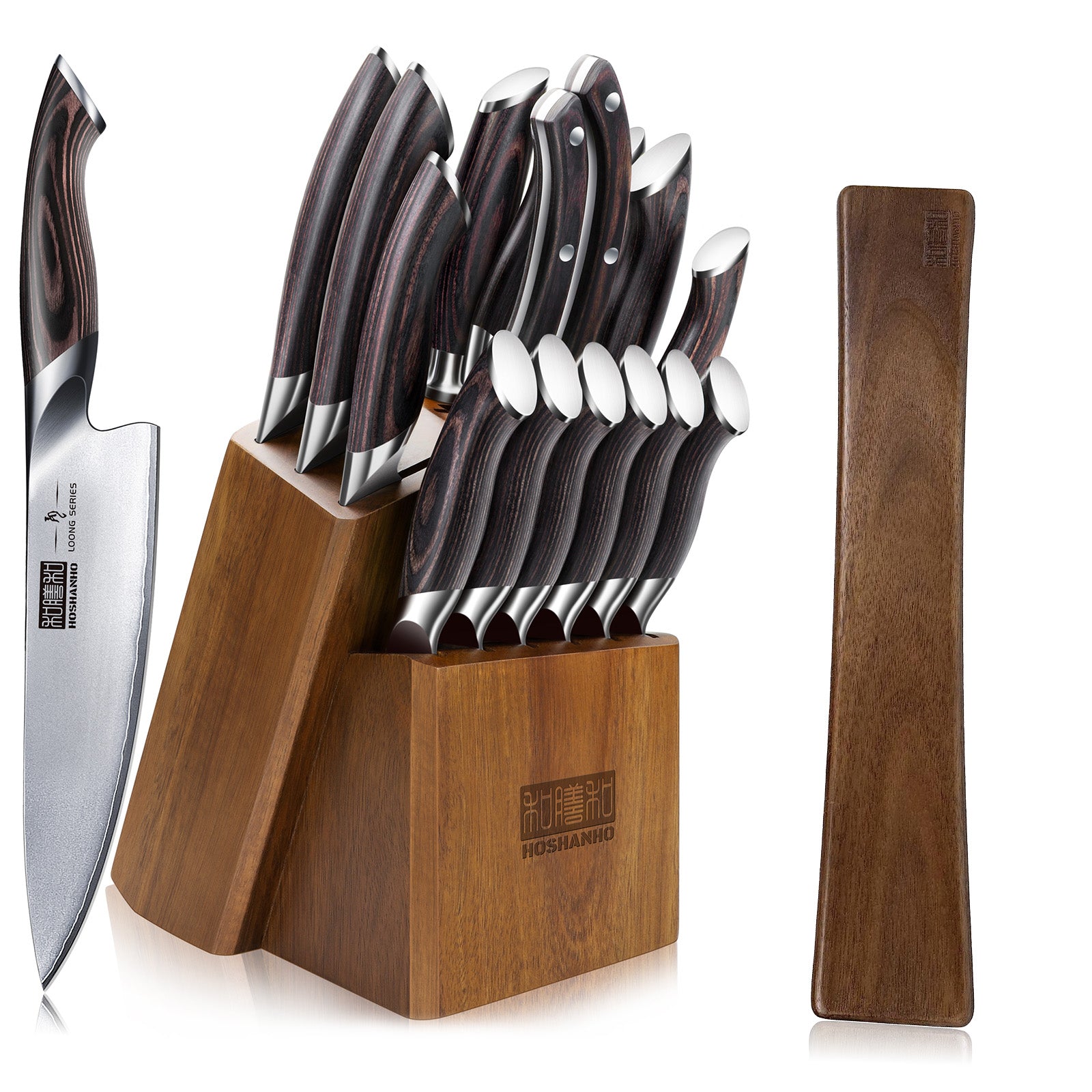 16-teiliges Küchenmesserset aus japanischem AUS-10-Edelstahl mit Block und Schärfer