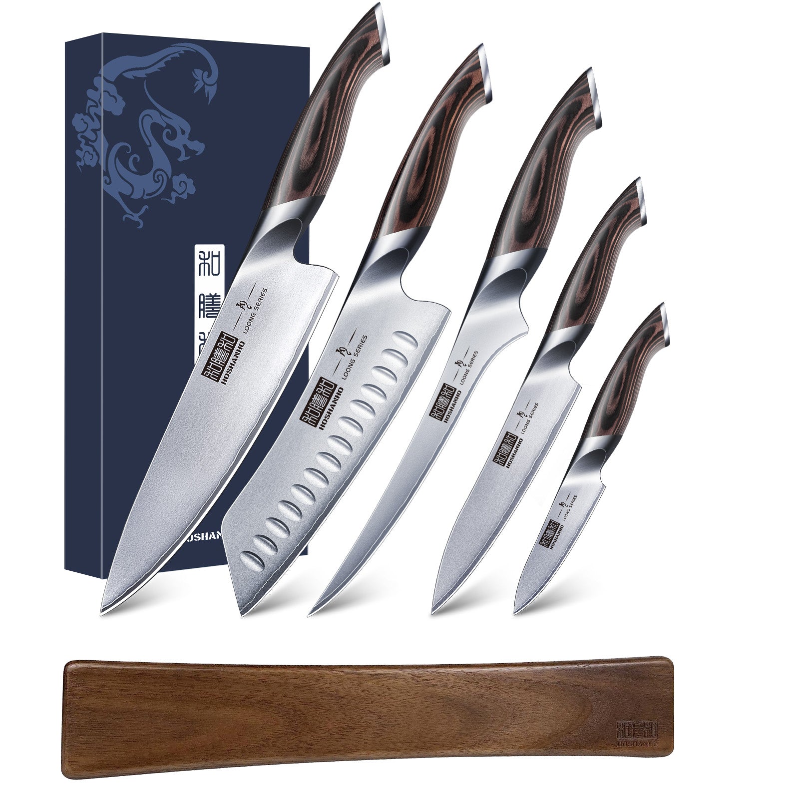 5-teiliges japanisches Messerset aus kohlenstoffreichem Edelstahl mit Pakkaholzgriff – Ultrascharfe Kochmesser