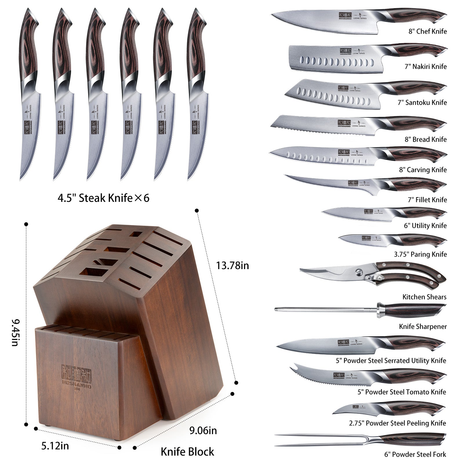 16-teiliges Küchenmesserset aus japanischem AUS-10-Edelstahl mit Block und Schärfer