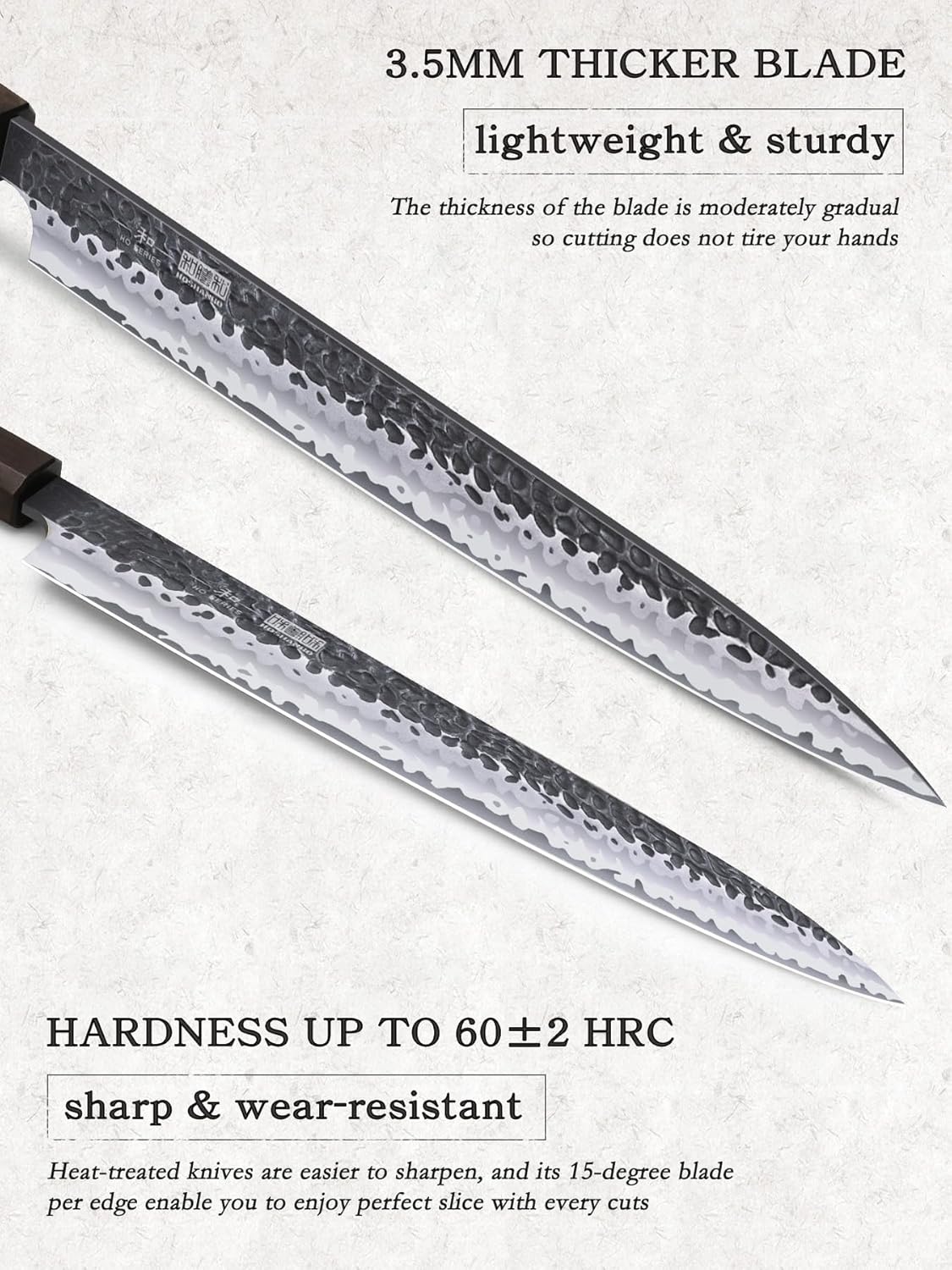 Professional Sashimi Knife – 10" Yanagiba blade with a flat, smooth edge allows ultra-thin, precise cuts for sushi and sashimi without damaging the ingredients.
