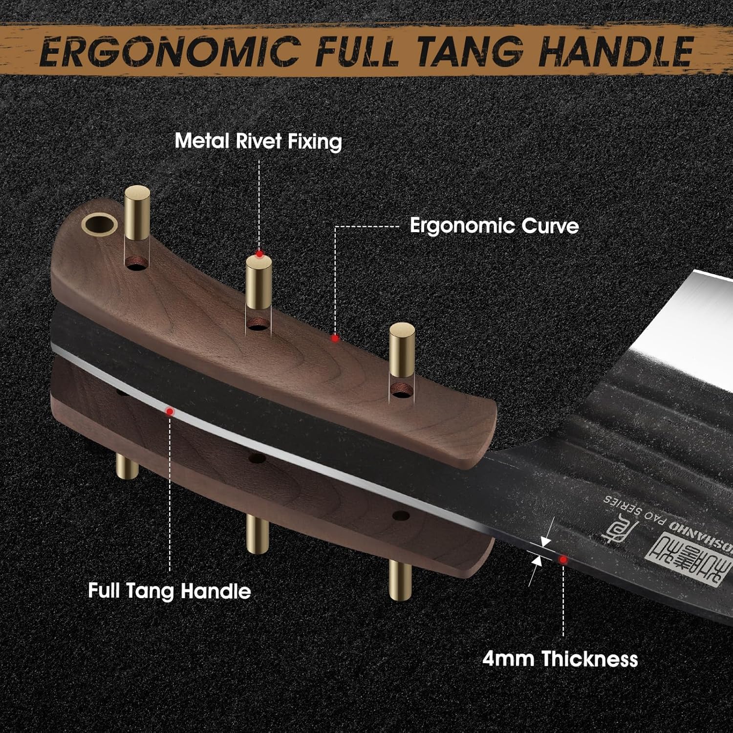 4mm thick spine adds stability and strength, ideal for chopping bones or dense ingredients. Perfect for BBQs and outdoor cooking.
