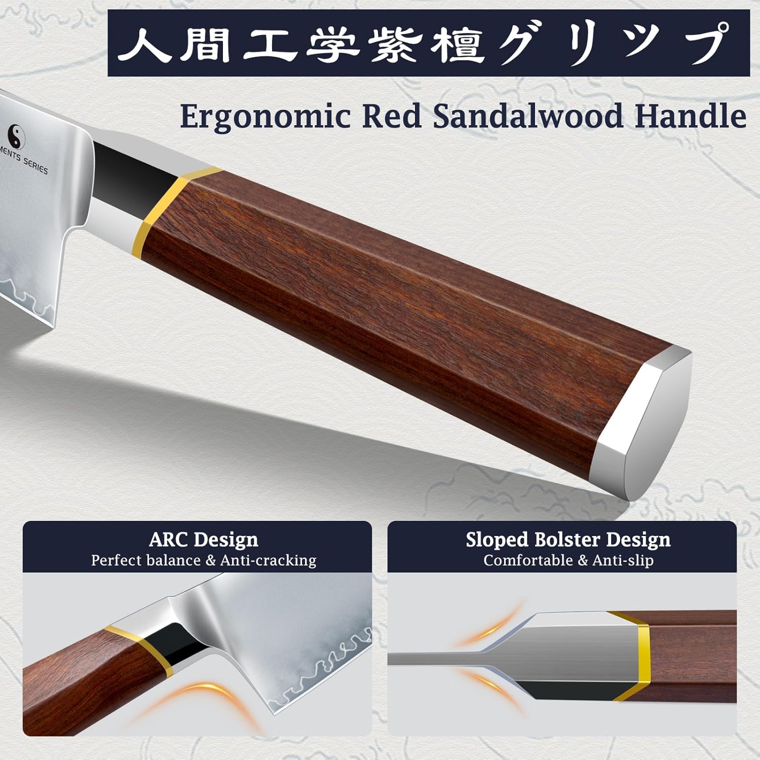 【Ergonomic Red Sandalwood Handles】 Comfortable, anti-slip, and perfectly balanced for long cooking sessions. Handles contour naturally to your hand for precise control.