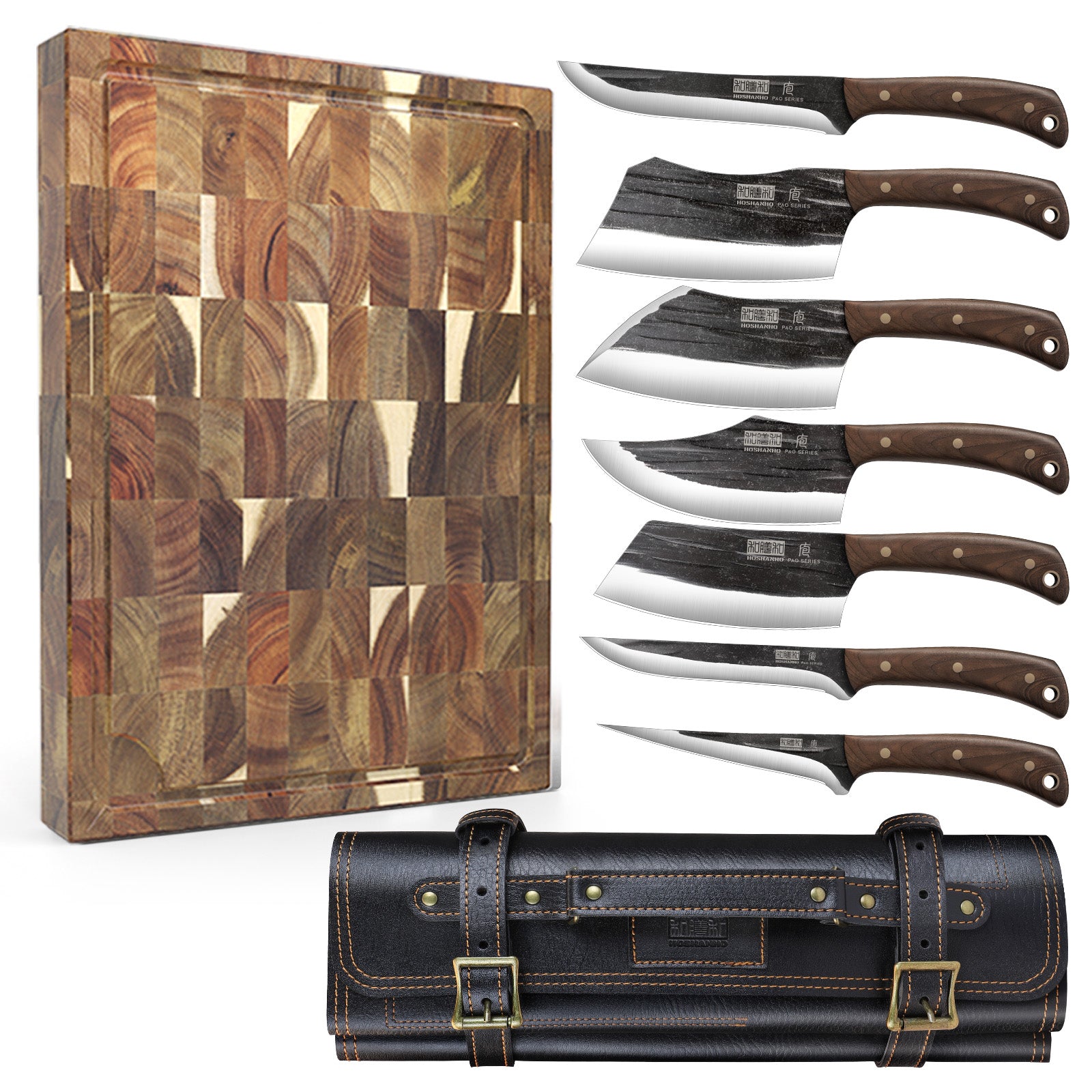 9-Piece Hand-Forged Butcher Knife Set with Premium Cutting Board